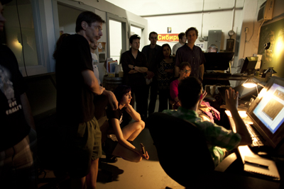 Asifa tourists eager to roam the fabrication studio (which we did). Lots of puppet parts , rigs and sets in development.