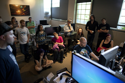 CG artists showing realistic creature faces and stylized character work