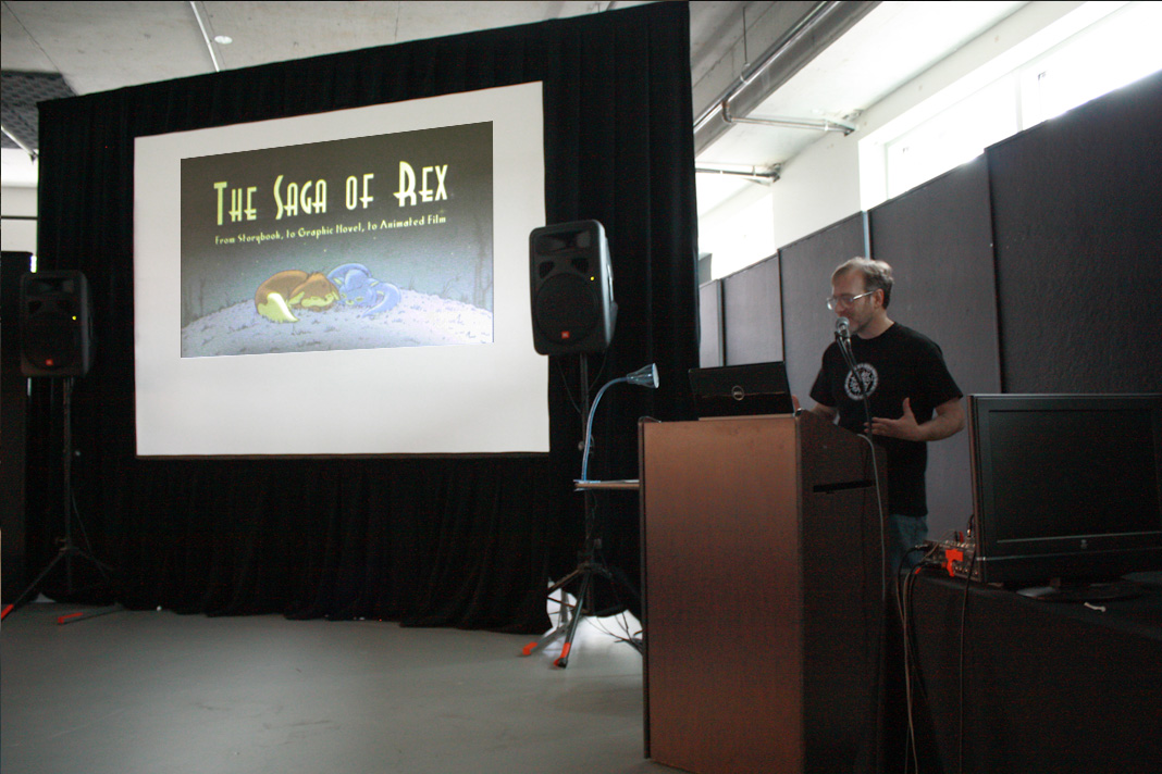 He showed the evolution of The Saga of Rex from illustrations, to a completed children’s book, to the graphic novel, and his current project of turning the graphic novel into an animated feature.